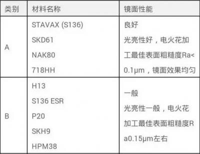 通常來講,大多數(shù)塑膠模具鋼能滿足鏡面電火花加工的要求,而大多數(shù)冷作模具鋼則不能滿足。