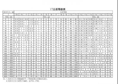 公差等級從IT01,IT0,IT1,IT2,IT3至IT18一共有20個,其中IT01表示的話該零件加工精度最高的,IT18表示的話該零件加工精度是最低的 ,一般廠礦機(jī)械屬于IT7級,一般農(nóng)用機(jī)械屬于IT8級。