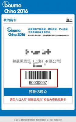 第2步:預(yù)登記完成后請(qǐng)截圖保存電子胸卡頁(yè)面,展會(huì)期間憑截圖至展會(huì)現(xiàn)場(chǎng)入口大廳“預(yù)登記觀眾”柜臺(tái)免費(fèi)換取胸卡入場(chǎng);