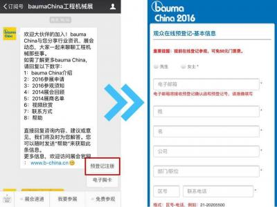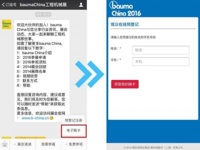 首先用手機(jī)掃一掃二維碼,關(guān)注bauma China微信公眾平臺(tái)