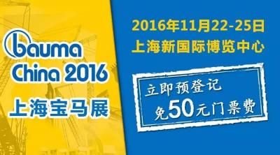 驕陽(yáng)似火,爍石流金,bauma China 2016上海寶馬展觀眾在線預(yù)登記通道已經(jīng)正式啟動(dòng)!觀眾夏日福利:現(xiàn)在預(yù)登記,立省50元門(mén)票免費(fèi)參觀!