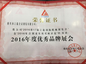 2016第17屆立嘉國際機械展覽會被評為“2016年度品牌展會”,同時重慶市立嘉會議展覽有限公司榮獲“2016年度優秀會展企業”殊榮。這既是行業對立嘉會議展覽有限公司的認可,更是對立嘉國際機械展的肯定。有此佳績不僅是“嘉人”團隊的努力,更要感謝各級政府、相關主辦、協辦、用戶企業、參展單位以及媒體等的支持和陪伴,立嘉展將以更出色的工作邁向未來,不負眾望,愿攜手并進,共創輝煌。