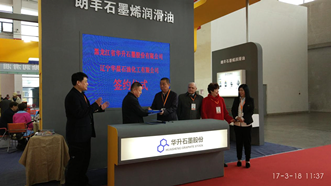 2017年3月17日,黑龍江省華升石墨股份有限公司引進(jìn)俄羅斯技術(shù)研制生產(chǎn)的“朗豐石墨烯潤滑油”在2017中國沈陽國際潤滑油、脂、養(yǎng)護(hù)用品及設(shè)備展覽會上獨(dú)領(lǐng)風(fēng)騷,成為唯一參展的石墨烯潤滑油生產(chǎn)企業(yè),這款集合節(jié)能、環(huán)保、高性能于一身的石墨烯潤滑油的閃亮登場,立刻吸引了眾多中外客商的關(guān)注,國內(nèi)實力雄厚的兩家企業(yè)當(dāng)場與其簽訂合作協(xié)議,共同把石墨烯潤滑油這塊環(huán)保節(jié)能的“大蛋糕”做大做強(qiáng)。