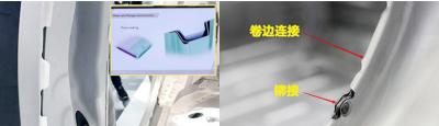 全新奧迪A8的B柱部位材料連接采用了卷邊連接和粘合劑連接的封邊技術(shù)。同時,由于不同材質(zhì)間熱脹冷縮程度的差異,還采用Piece-locking連接技術(shù)在卷邊處間隔固定距離打上凹坑,使三層材料全部貼合。此外,在車輛的A柱、C柱和車頂位置,也采用了相同的連接方式,這些冷連接工藝將不同材質(zhì)有效地固定在一起。