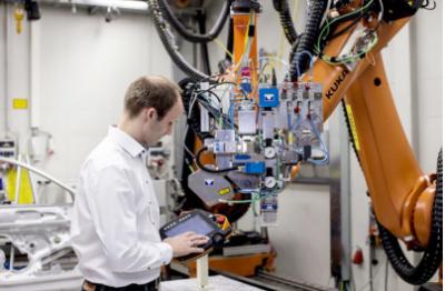 (奧迪工程師正在控制遠(yuǎn)程激光焊接系統(tǒng))