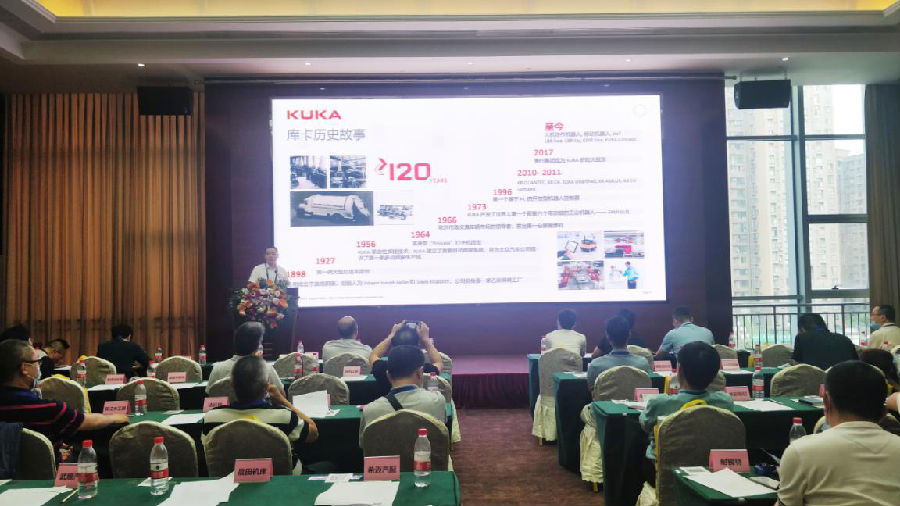 庫卡機器人(上海)有限公司華西大區經理張明立,以及寧夏巨能機器人股份有限公司西南大區經理唐濤濤為大家聯合帶來“數字KUKA,智能KUKA——KUKA數字化產品解決方案”以及“數字化車間的集成與應用”主題演講。