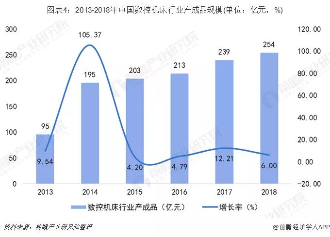 隨著我國航空航天行業、工程機械行業等的快速發展,2014年,我國數控機床行業產成品規模迅速擴大。2014-2017年,我國數控機床行業產成品逐漸增多,2018年,我國數控機床產成品規模達254億元,較2017年增長6.00%。
