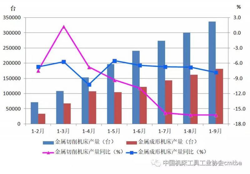 作為機床最大市場的汽車制造業已15個月同比連續下滑。今年1-9月汽車累計產銷量比上年同期分別下降11.4%和10.3%,這對機床工具行業的市場需求將造成很大影響。