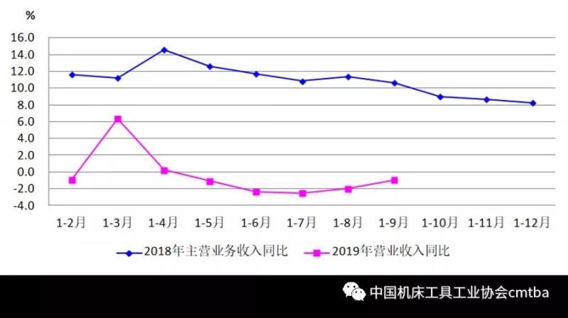 國統局和協會重點聯系企業統計數據均顯示,2019 年前三個季度機床工具行業運行總體上呈下行趨勢,收入、利潤、產量、產值等主要經濟指標均同比下降。在金屬加工機床中,金屬切削機床行業指標的下降幅度比金屬成形機床行業更大一些。協會重點聯系企業中金屬加工機床訂單數據也為同比下降。