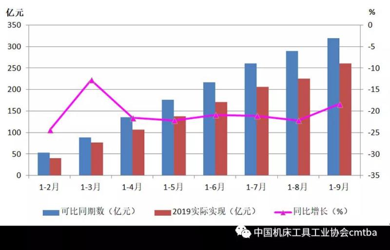 協會重點聯系企業1-9月累計完成主營業務收入同比降低14.7%。其中,金屬切削機床行業累計完成主營業務收入同比降低30.8%,金屬成形機床行業累計完成主營業務收入同比降低3.3%,工量具及量儀行業累計完成主營業務收入同比降低0.5%。