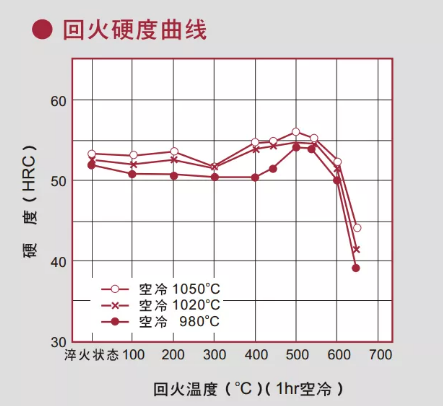 從以上的圖線可知,材料要求硬度越高,則淬火的溫度就越高,韌性越低,回火的溫度也越低。