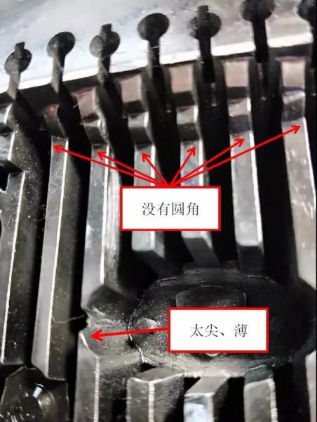 由于應力集中,壓鑄200模次就出現(xiàn)裂紋。