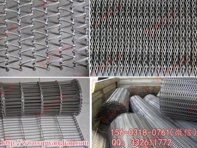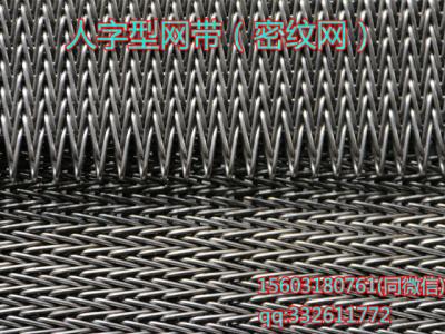人字網帶是由左右交替的網條通過四根直串條聯結而成,這種網帶可擋住較小物件的滲漏,組合牢固,抗拉強度大,廣泛應用于石油化纖、熱處理、食品工業等行業,邊緣可加擋片,直接焊接或直接翻邊。